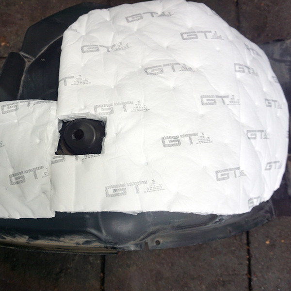 Lapisan tebal dari bahan penebat suara diletakkan di lantai. Bahan ini tidak hanya menyerap suara tetapi juga memberikan peredam getaran,mengurangi kebisingan dan getaran yang akan dikirimkan dari permukaan jalan.